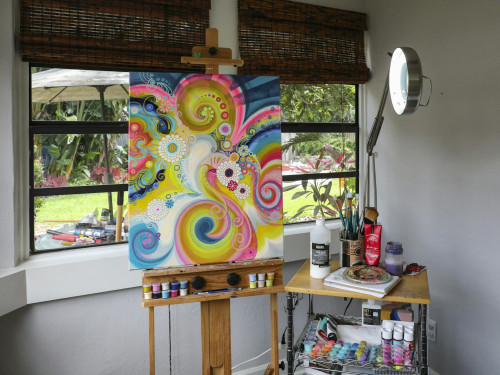 Farverne i rummet har stor betydning for stemningen. Nogle foretrækker rolige, neutrale nuancer, der giver ro til koncentration, mens andre trives bedst i et farverigt miljø, der stimulerer fantasien. Vælg det, der passer til din måde at skabe på.