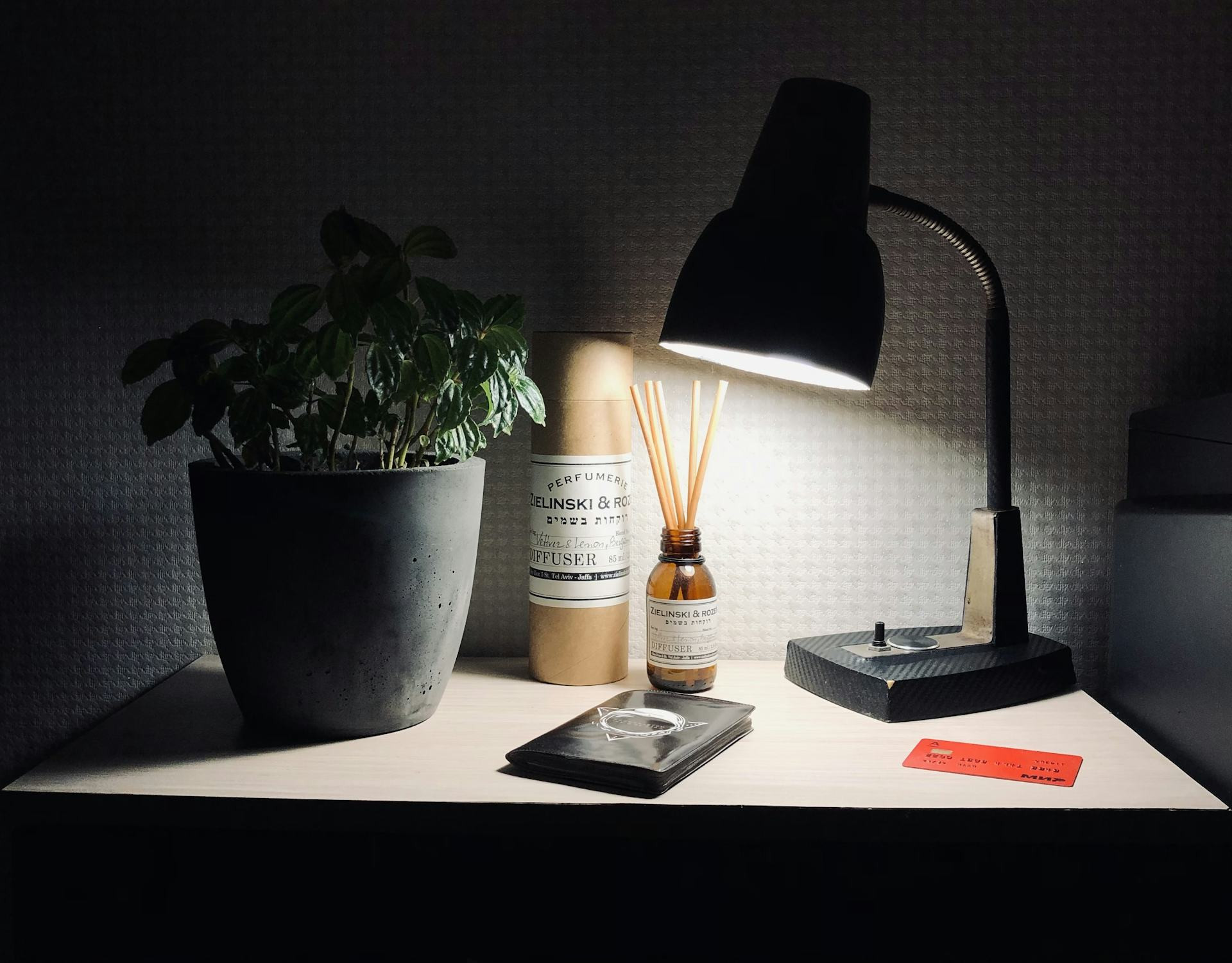 - Kontoret eller arbejdspladsen bør have et justerbart lys, der kan tilpasses dagens rytme. Et skrivebordslampe med bevægelig arm og dæmpbar funktion giver fleksibilitet.